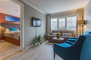 Junior suite med badstue, dusj, toalett, WiFiTradisjonsrikt høyfjellshotell med svømmebasseng, treningsrom og lobbybar.Junior suite med liten forstue.1 bad med dusj, toalett og badstue samt ett lite bad m...