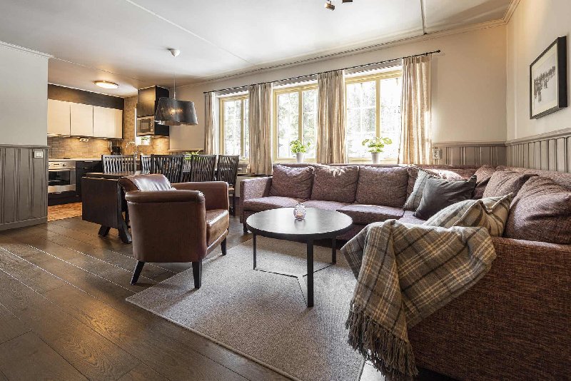 Horizon Lodge ligger ved Hundfjället. Fritstående hytte med hems, 7+1 sengepladser, 100 m², 3 soveværelser, 2 brusere, 2 WC, sauna.KøkkenKøkkenet indeholder: elkomfur med ovn, køleskab, frys, ...