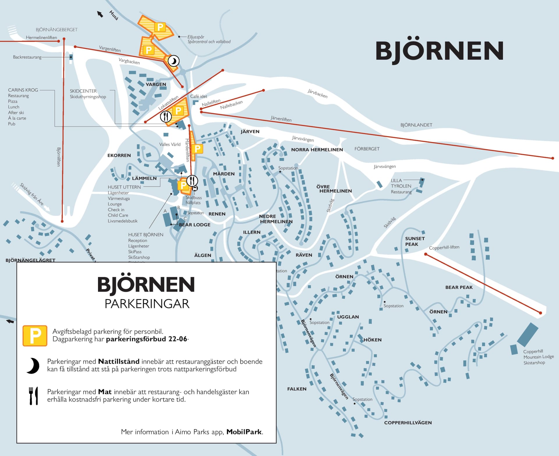 I Åre er der både gratis og betalingsparkering. For at sikre god pladsudnyttelse, opkræves der parkeringsafgift på flere centrale pladser – især nær skiområder og lifte. Afgiften blev indført i vintersæsonen 2021–2022 og gælder for udvalgte områder. Husk at tjekke skiltning og betalingsmuligheder via AIMO appen Parkeringsappen Aimo - Aimo Park Sverige eller automat på stedet.