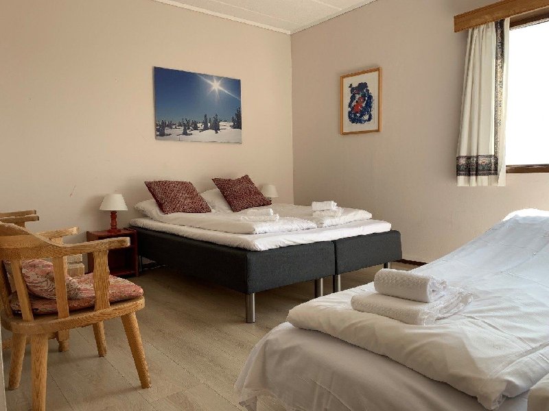 Ferdig oppredd dobbeltseng eller 2 enkle senger med 2 hodeputer, liten sittegruppe, TV, kaffe/tekoker, parkettgulv, dusj/toalett.Trivelige dobbeltrom eller twin rom, 2 hodeputer, liten sittegruppe TV, parke...
