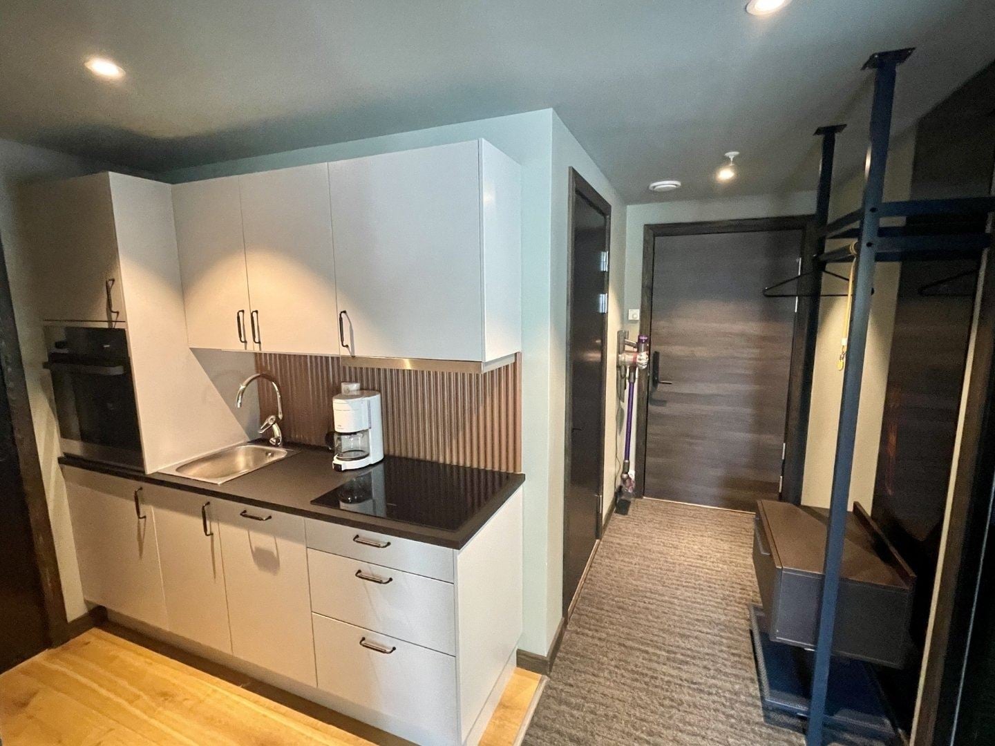 Rommet har også et praktisk pentry med lite kjøleskap, stekeovn, vask og enkelt kjøkkenutstyr. Innredet i gjennomført skandinavisk stil – ideelt for avslapning etter en dag i fjellet.