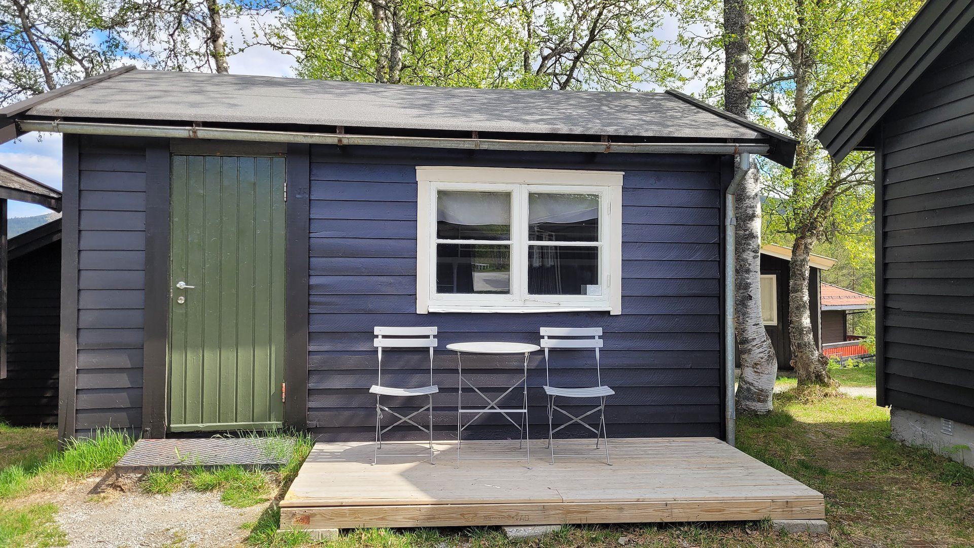 Enkel campinghytte med køyeseng, kokke muligheter (kjøleskap, utstyr, platetop med 2 kokeplater). Dusj, toalett og vaskerom i felles sanitærbygning.