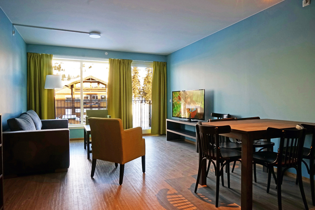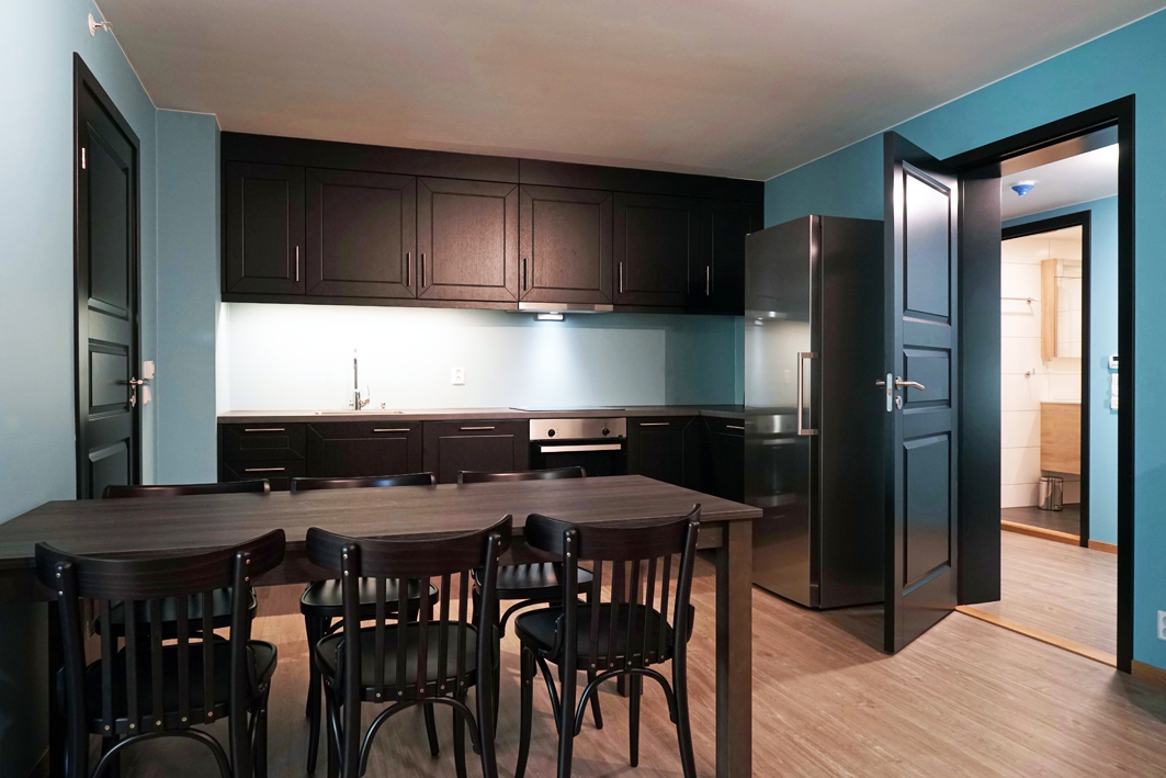 Leiligheten har egen balkong Fullt utstyrt kjøkken med oppvaskmaskin, komfyr, kjøleskap, mikrobølgeovn, vannkoker og kaffetrakter.