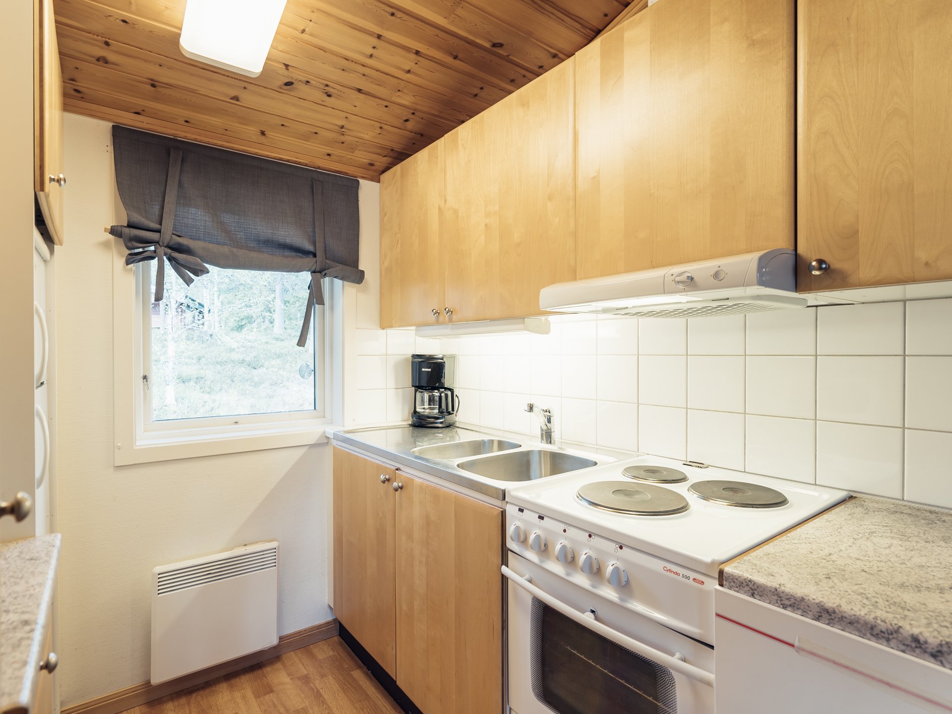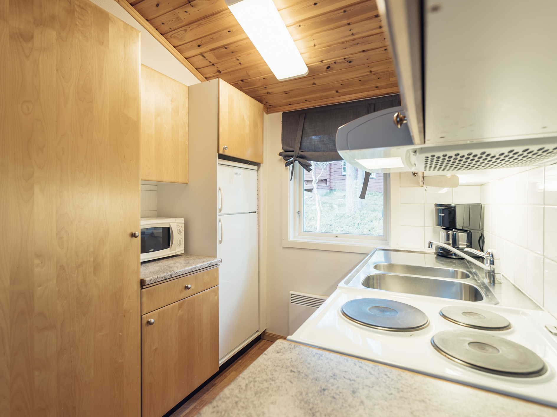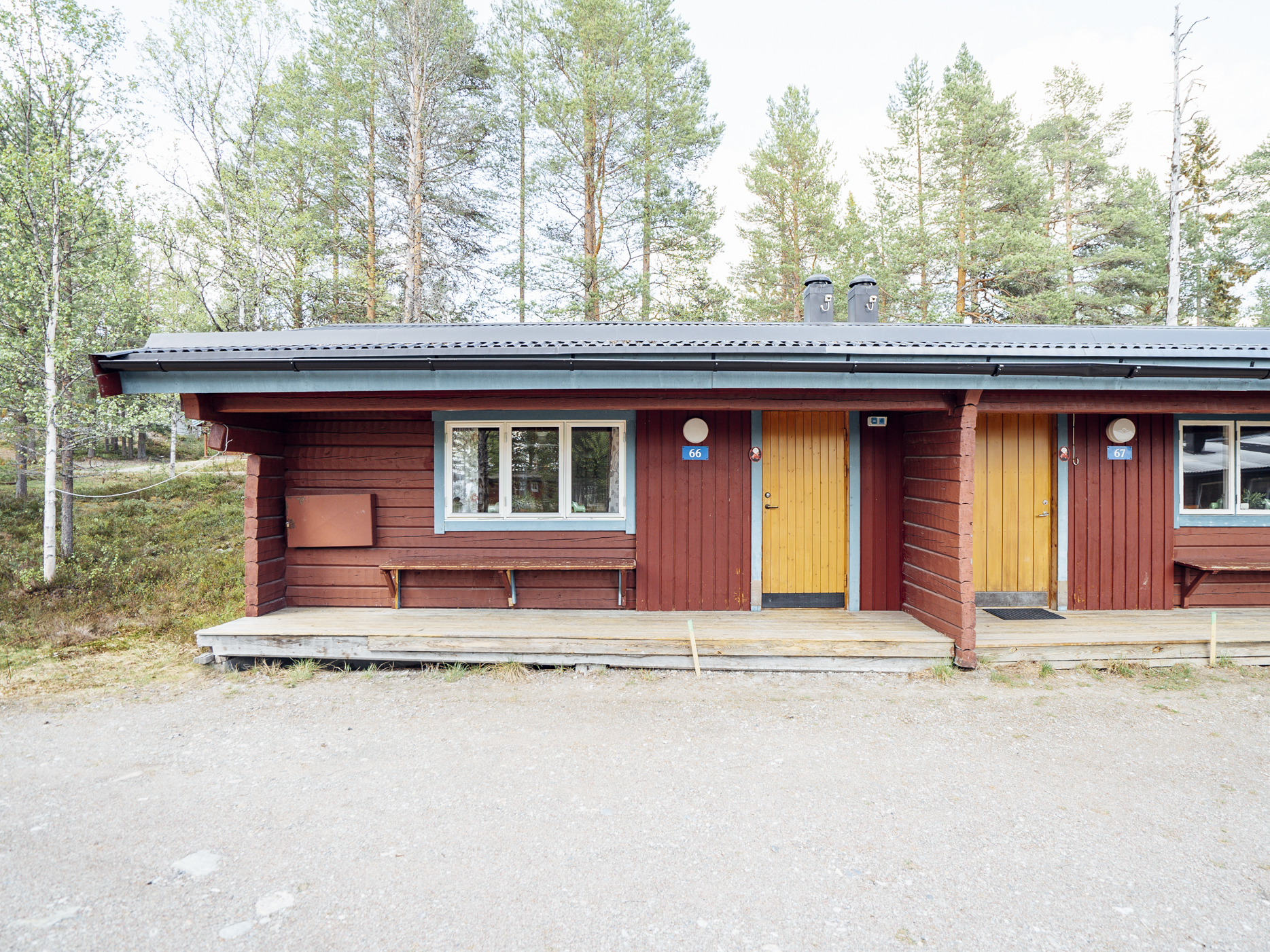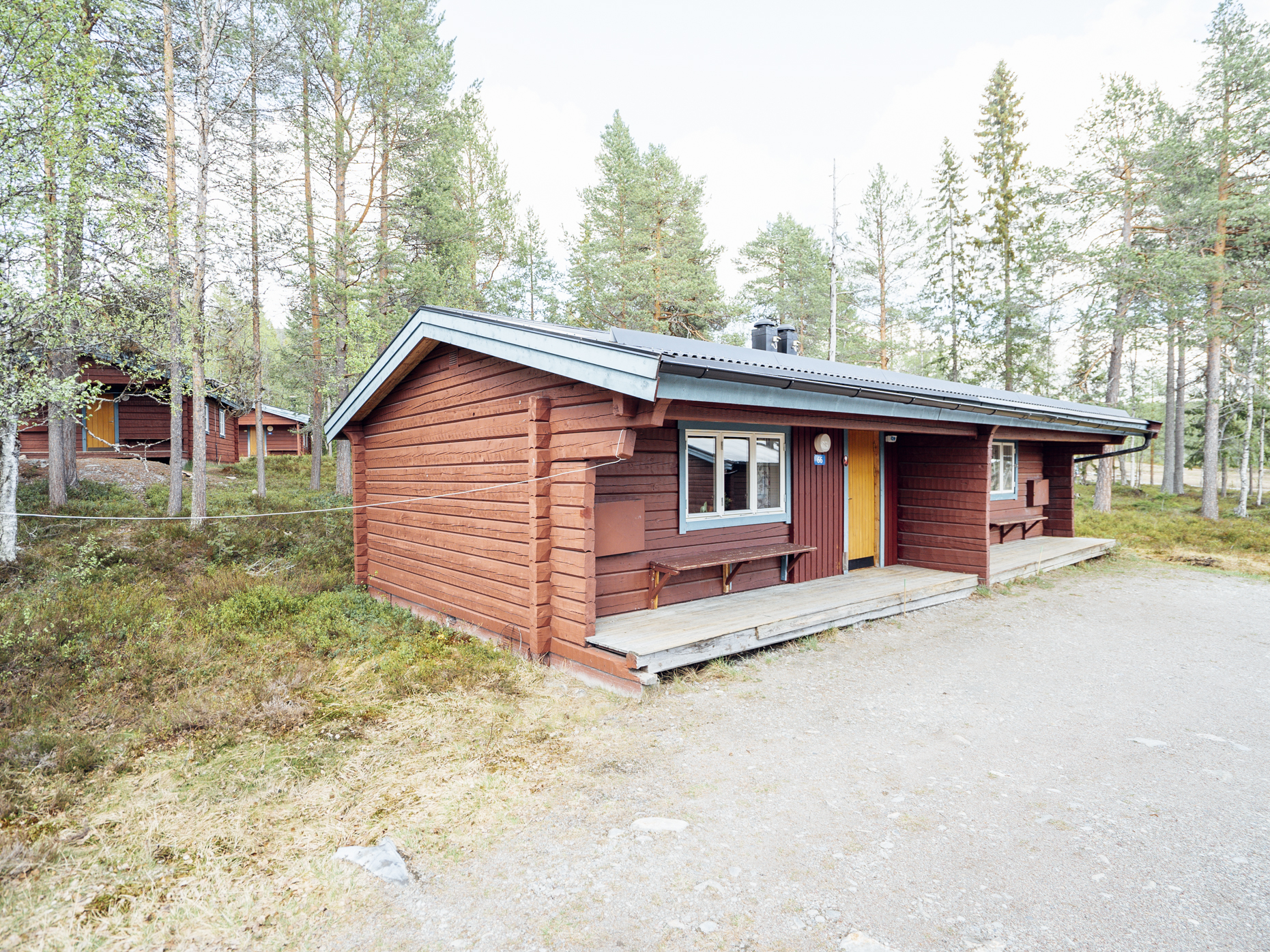 Mindre parhus i Skogsbyn med plats för upp till 5 personer. Här är det en öppen planlösning med köksavdelning, matplats, TV - hörna med bäddsoffa för 2 personer och en nedfällbar väggsäng. Sovrum 1 har en enkelsäng och en nedfällbar väggsäng. Torkskåp och motorvärmaruttag. Rökning och husdjur är ej tillåtet. Laddning av elbilar är endast tillåtet vid avsedda laddningsstolpar. Boendet håller en enklare standard.