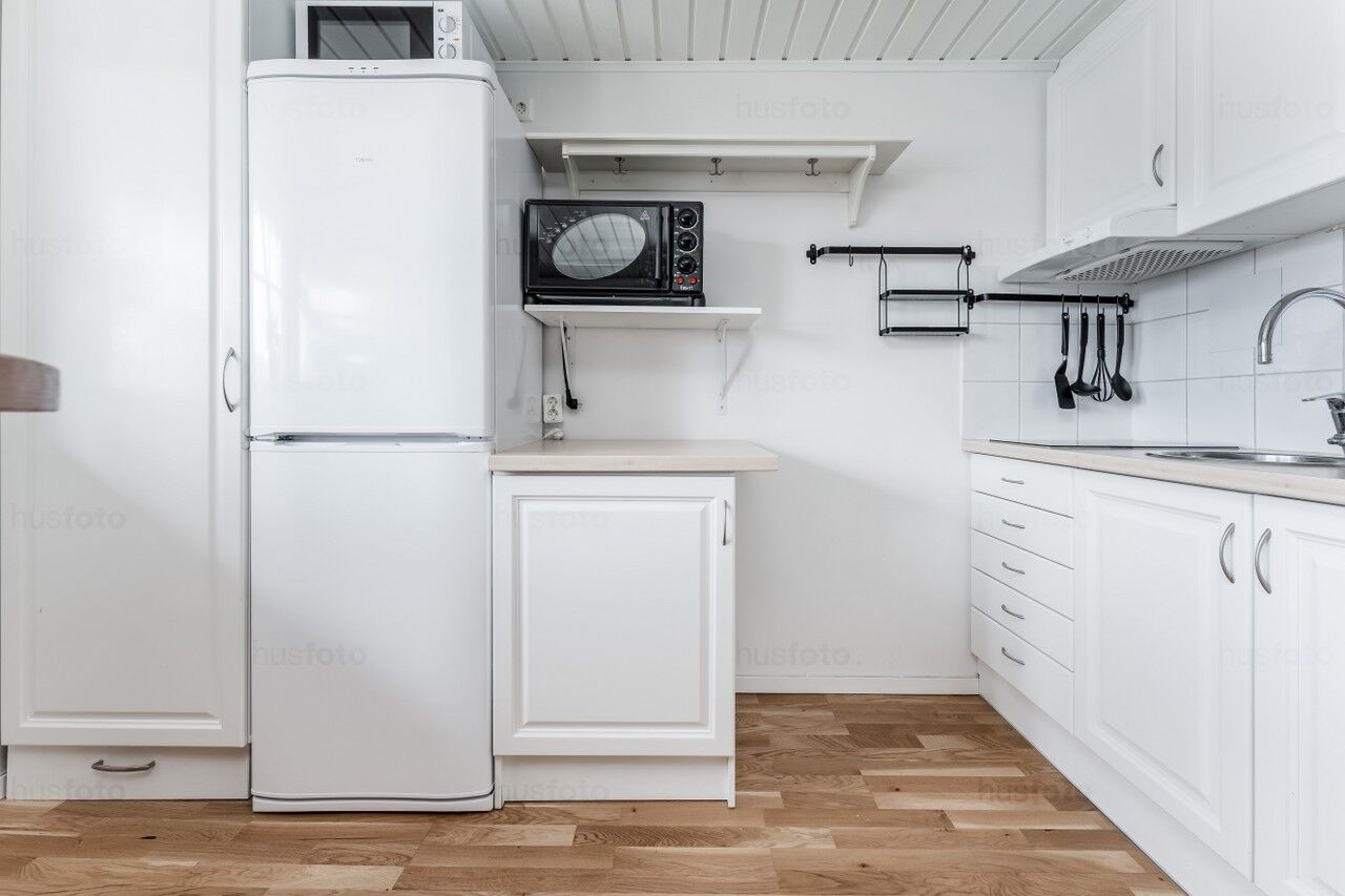 I det välutrustade köket finns bland annat; kyl/frys, mini ugn, mikro och kaffebryggare.