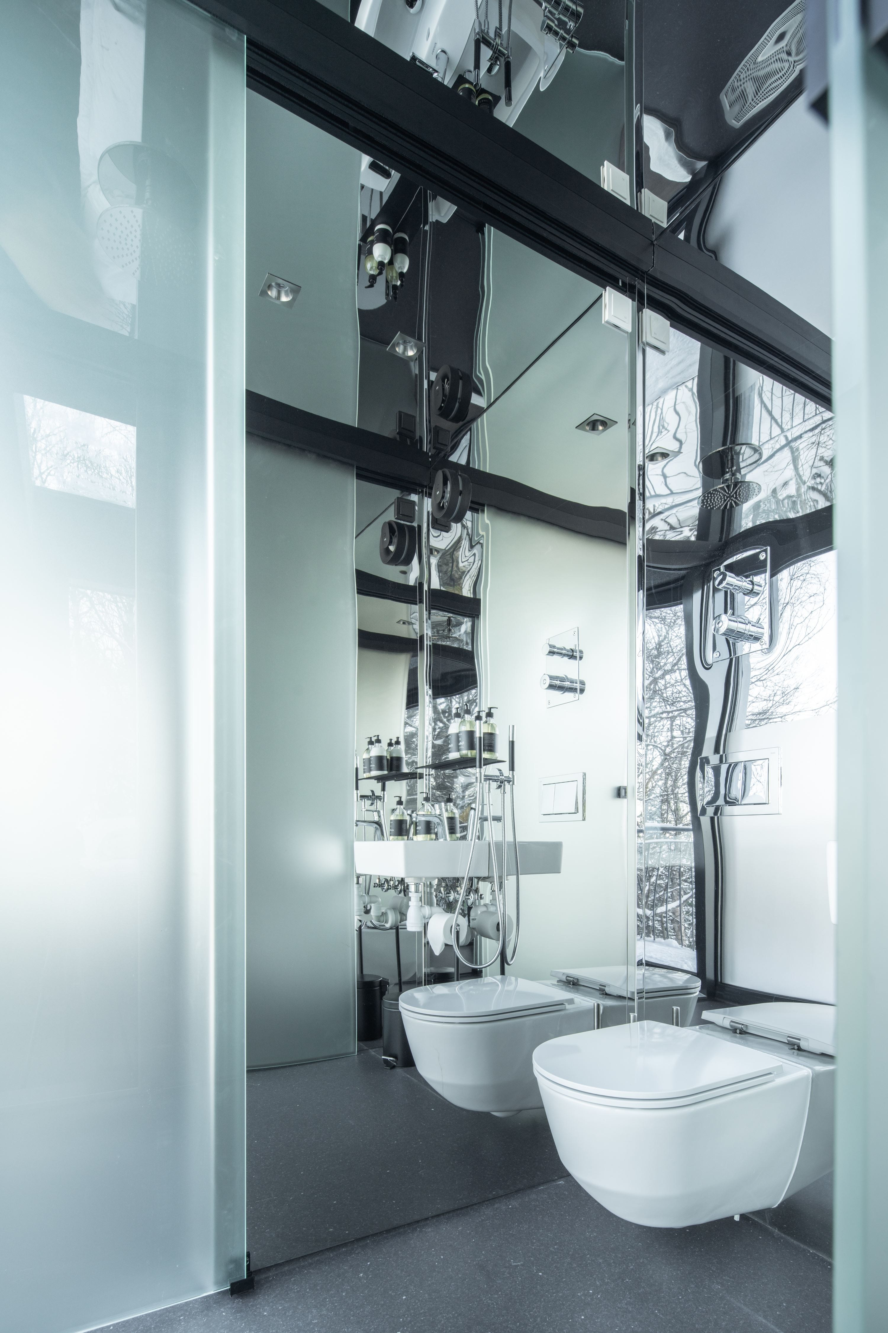 De små hyttene består av oppholdsrom med spiseplass og kjøkken, bad, entré og soverom. Hyttene har store vindusflater på tre av fire vegger og i taket på soverommet. Dette gir opplevelsen av å sove under åpen himmel. Alle vinduene har solskjerming.