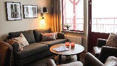 Ski Lodge - premium Renoverad med nya ytskikt och kök, möbler, mattor och gardiner), dörrar istället för draperier till sovrummen. Lägenhet på våningsplan 2, balkong i söderläge. 46 kvm, 6 bädd...