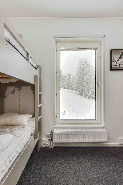 Apartment 9, an exclusive residence with magnificent views of the ski slope and mountains. This apartment features two bedrooms: one larger room with wardrobe storage and two bunk beds, and one smaller room...