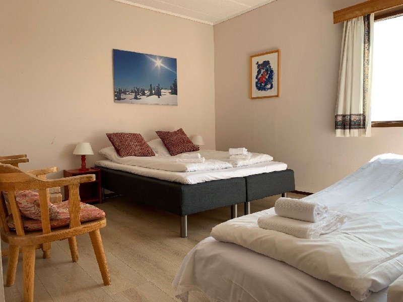 Små familierom med ferdig oppredd dobbeltseng med sovesofa eller køyeseng, liten sittegruppe, TV, kaffe/tekoker, parkett eller teppegulv,Familierom med oppredning enten på sovesofa eller i køyeseng for ...