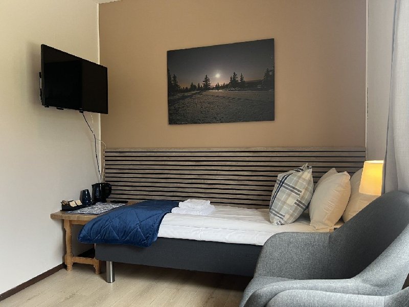 Ferdig oppredd dobbeltseng eller 2 enkle senger med 2 hodeputer, liten sittegruppe, TV, kaffe/tekoker, parkettgulv, dusj/toalett.Trivelige dobbeltrom eller twin rom, 2 hodeputer, liten sittegruppe TV, parke...