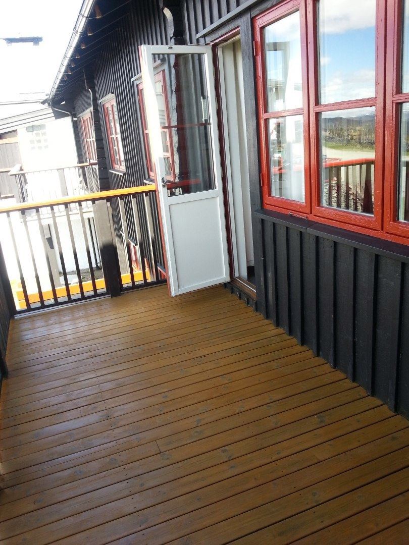 Leiligheten er vestvendt med veranda og panoramautsikt mot bl.a. Jotunheimen.
