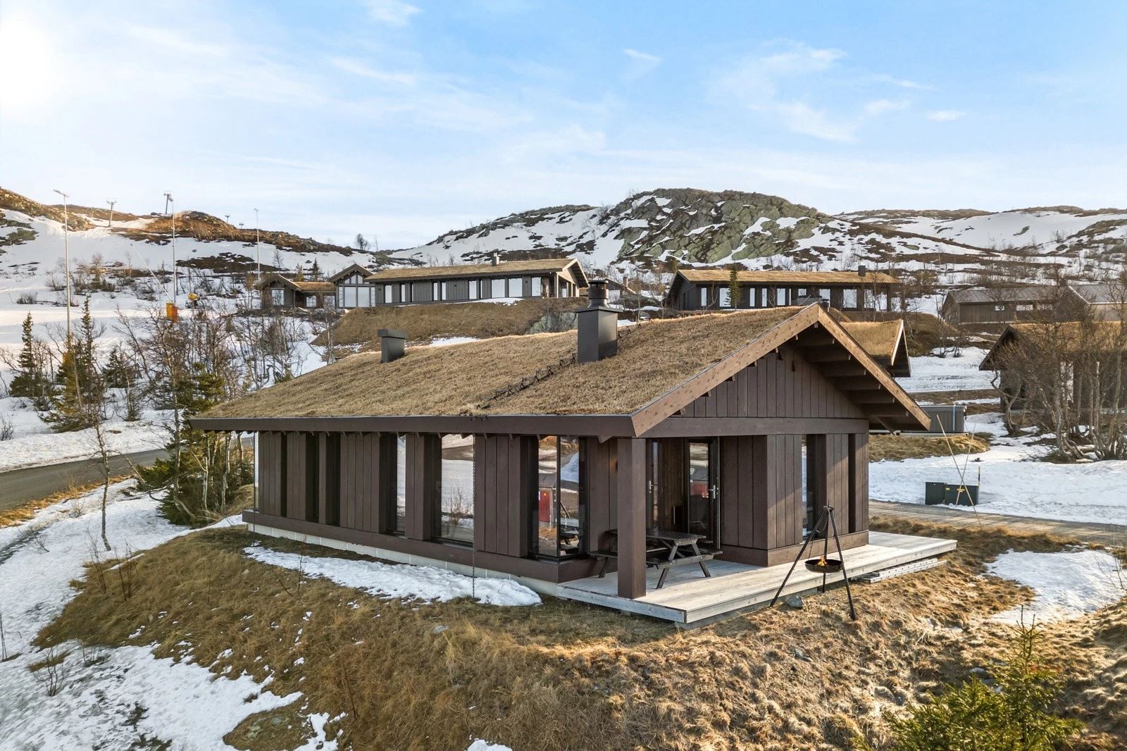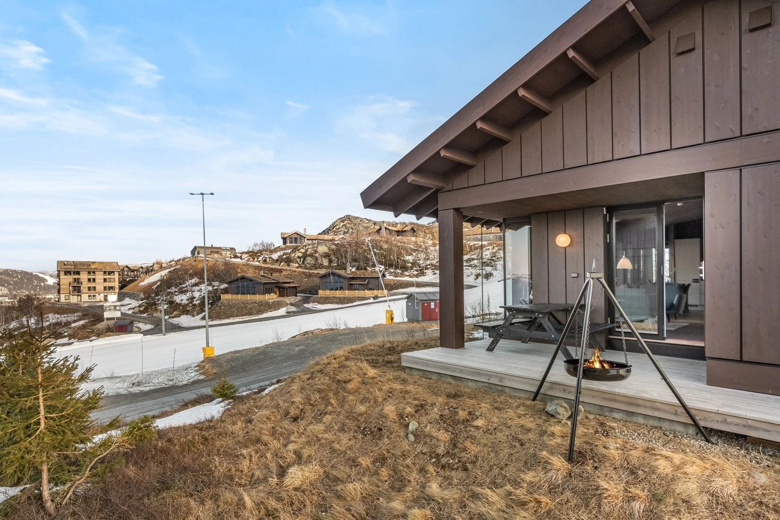 Mange har ski in/out til Gausta Skisenter og utsikt mot Gaustatoppen.