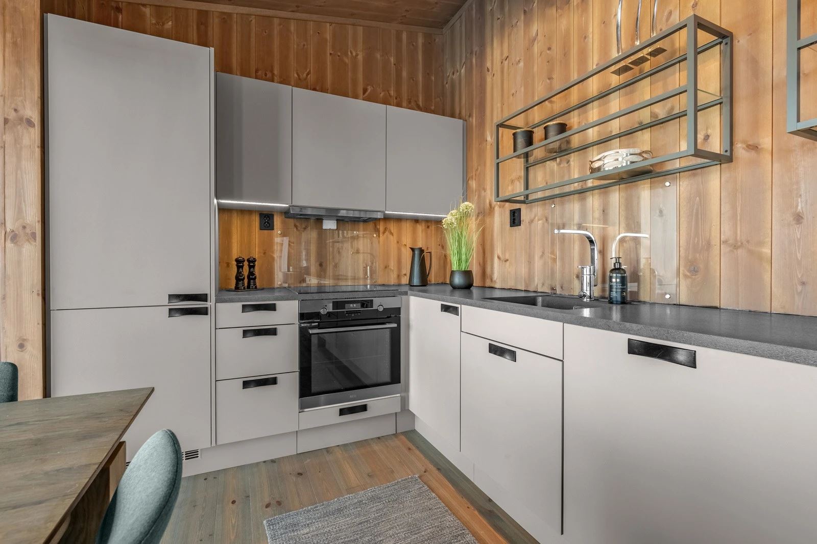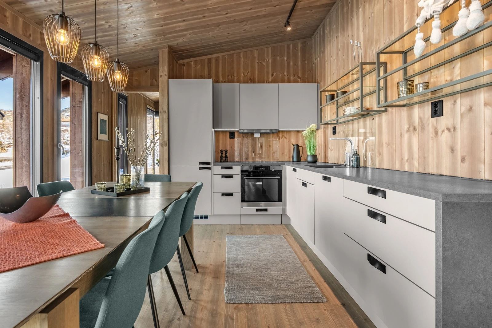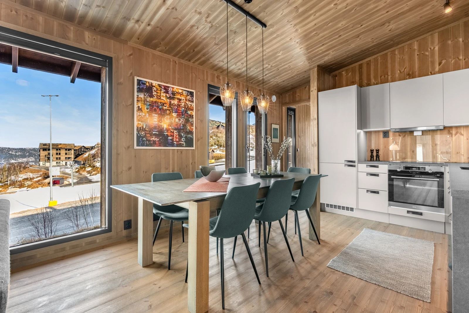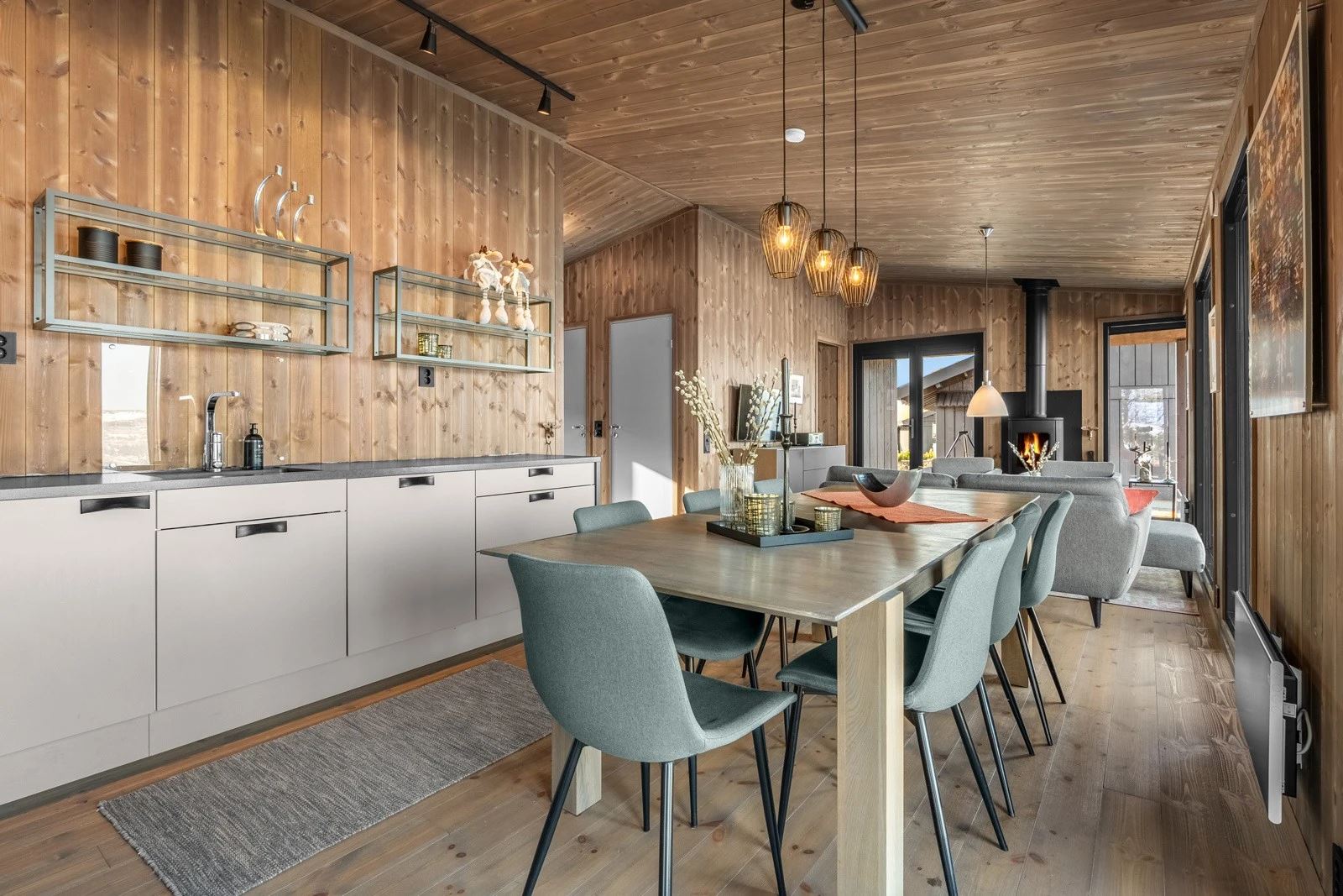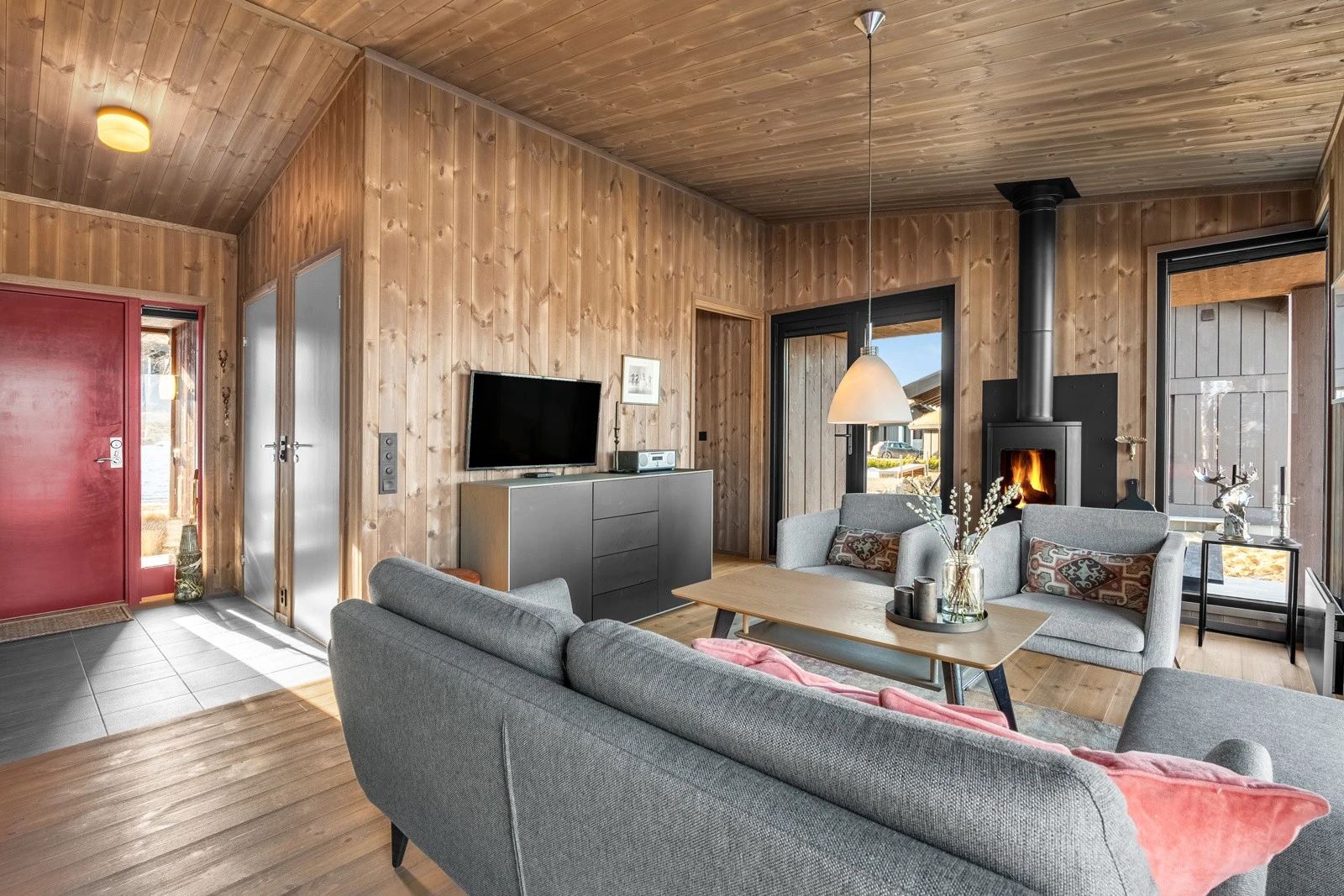 Moderne hytte med 4 soverom for opptil 9 gjester. Åpen stue og kjøkkenløsning med peis og store vinduer med panoramautsikt mot Gaustatoppen og Gausta Skisenter. TV og Wi-Fi*
