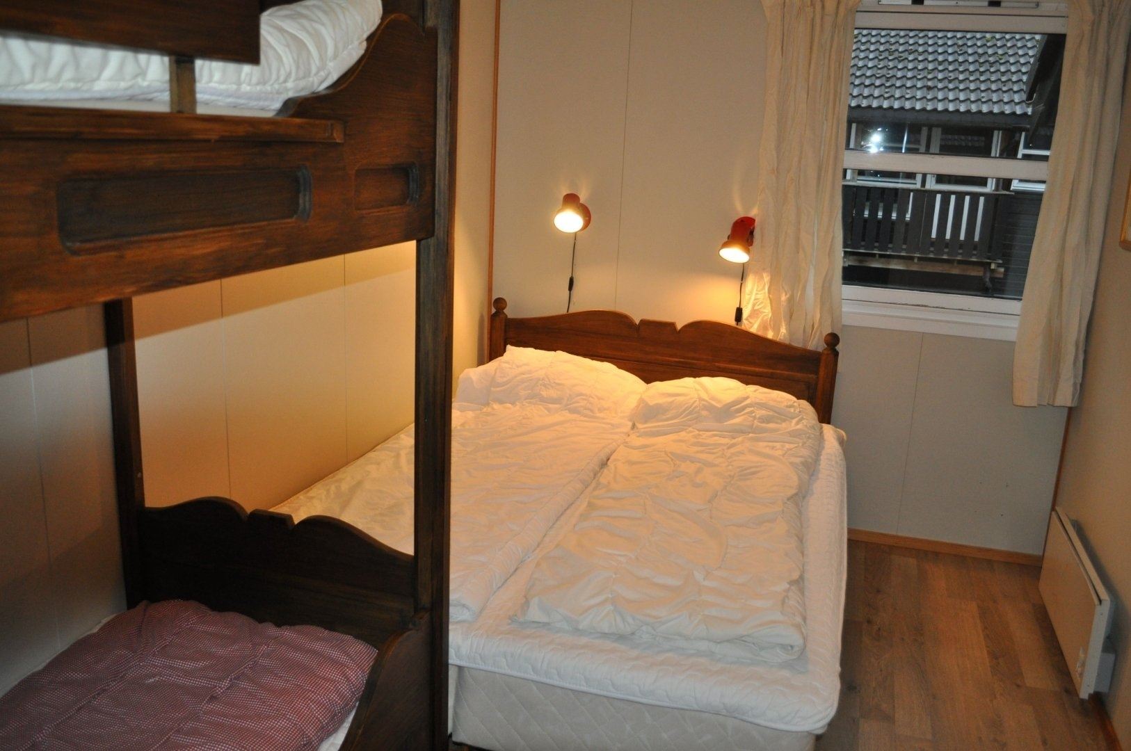 Soverom 1: Dobbeltseng (150cm x 200cm) + Køyeseng (75cm x 200cm)