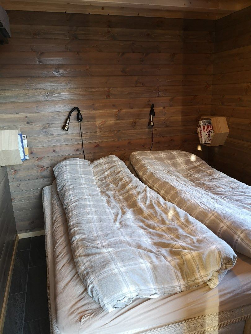 Ett separat soverom med dobbeltseng 150x200. To hemsrom med mange vinduer som kan åpnes. Hems 1 har en soveplass m madrass 100x210, og hems 2 har en soveplass m madrass 70x180.