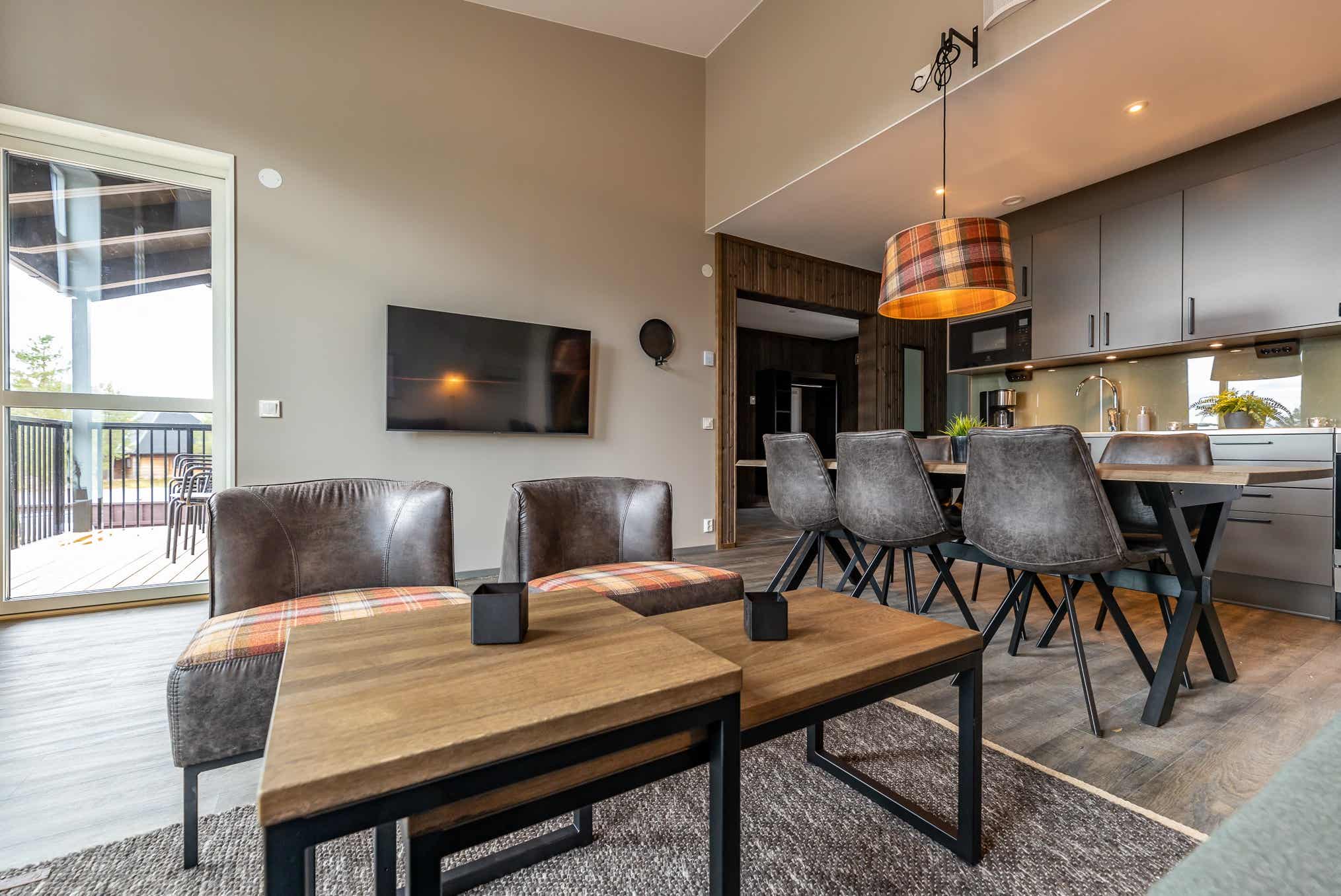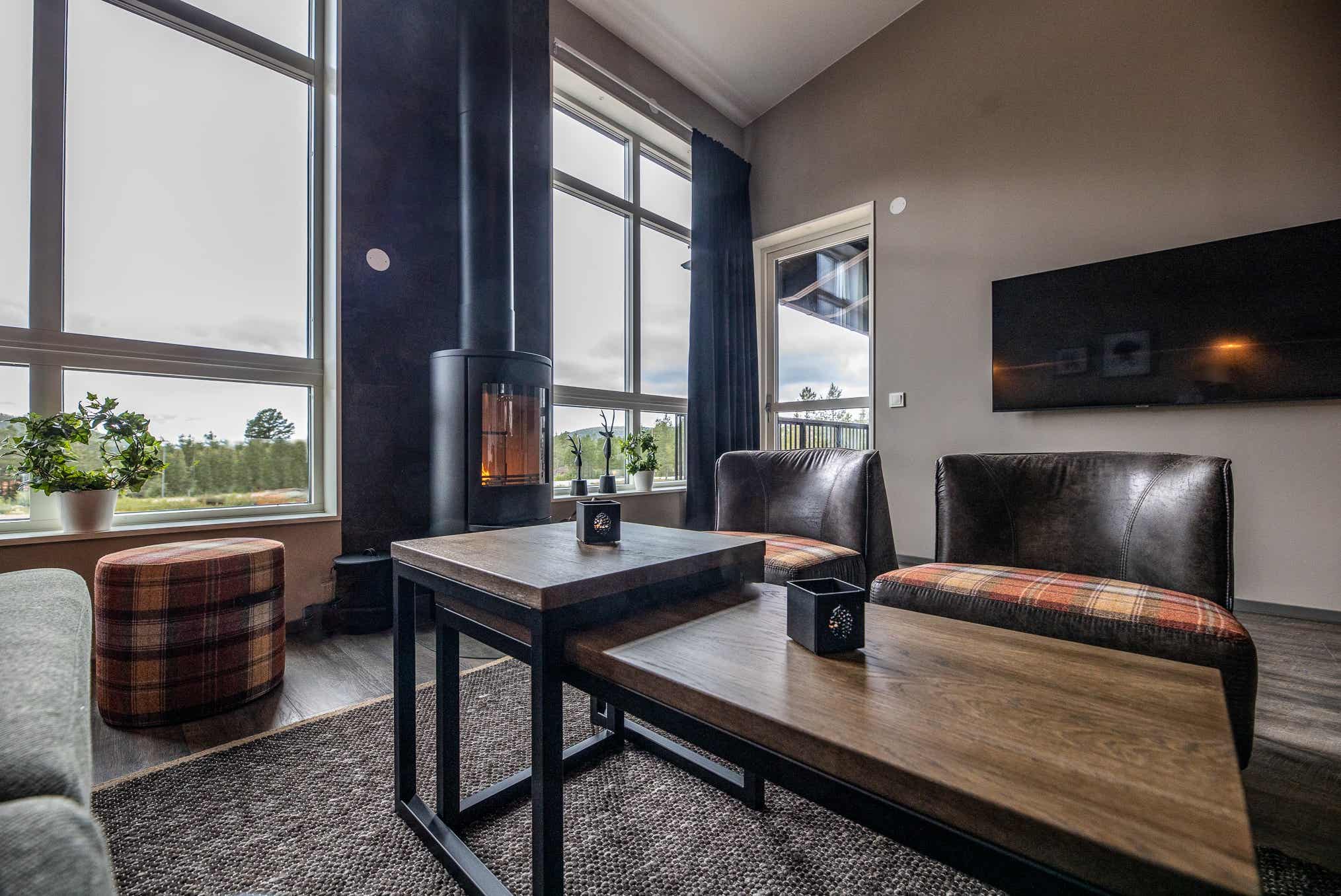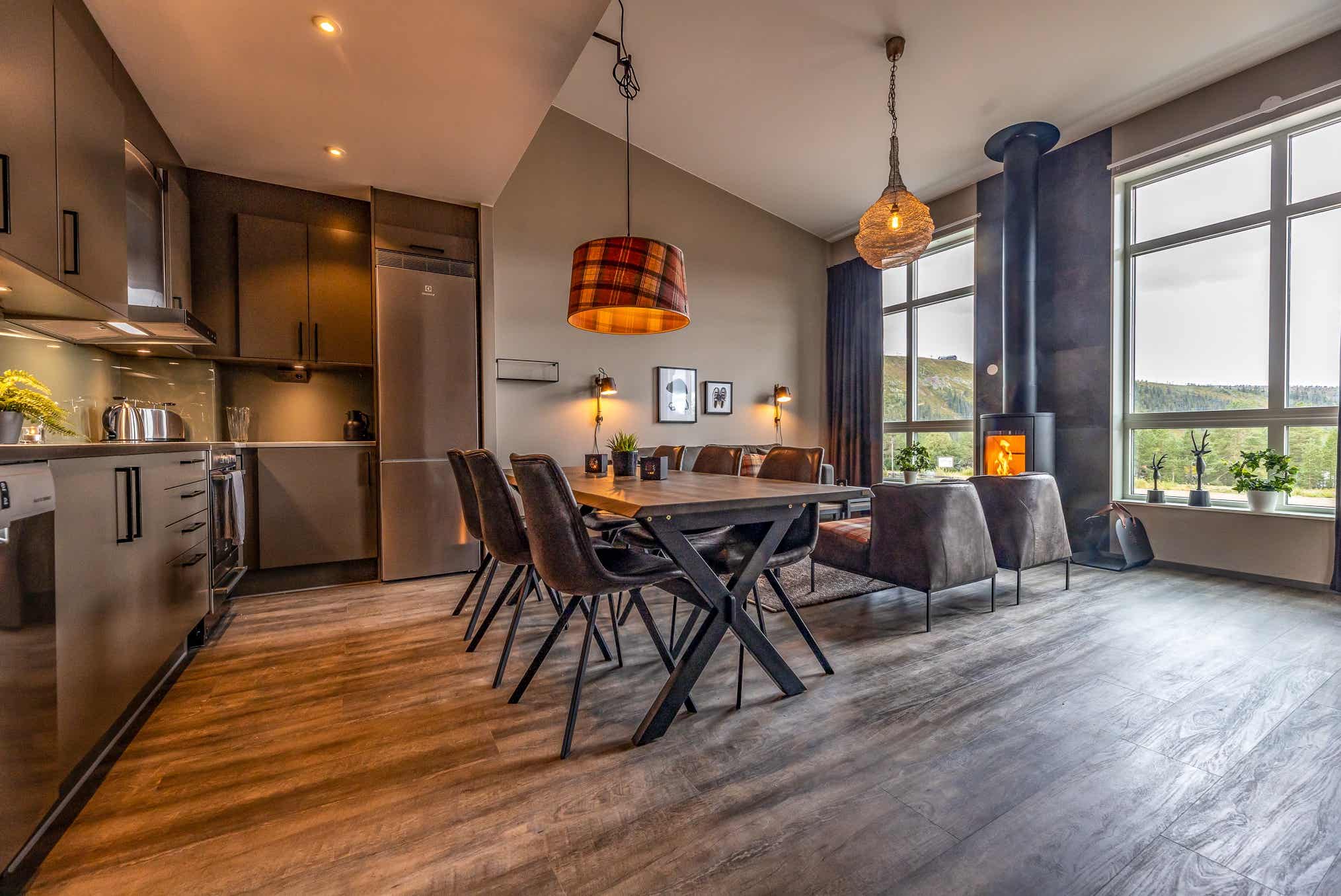TV, brændeovn (brænde indgår ikke), tørreskab, balkon, rum til skiudstyr, 1 parkeringsplads, adgang til fælles elbilopladere med type 2 stik mod betaling.
