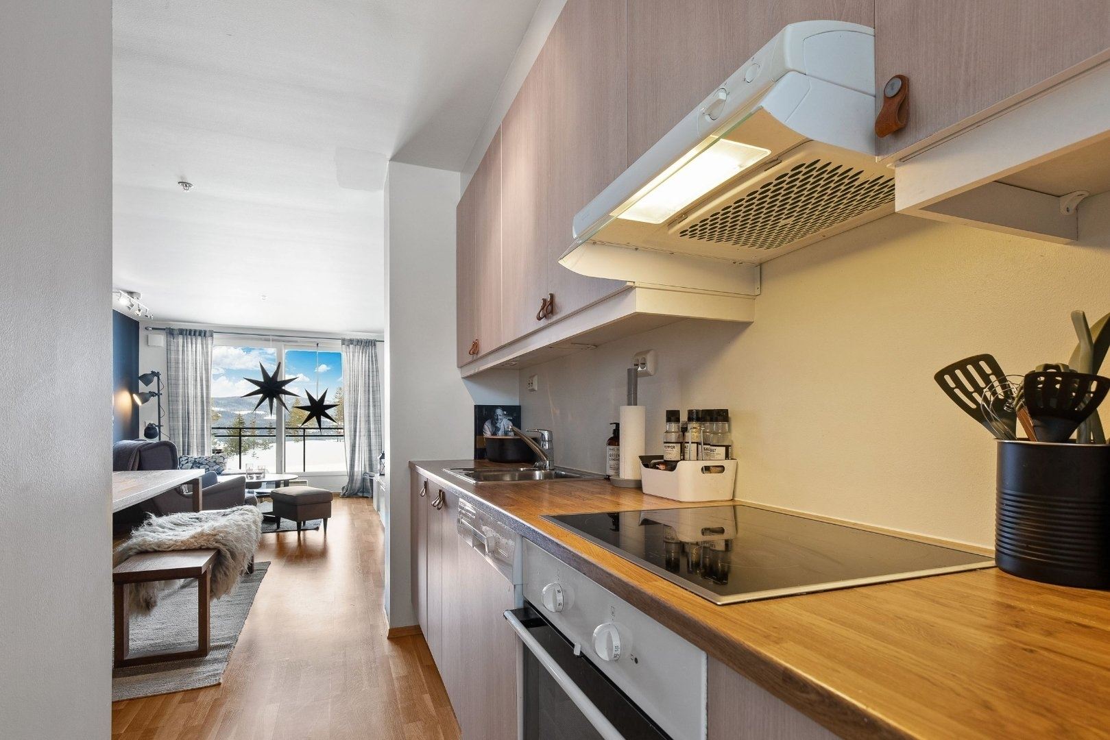 Krystallen B202 tilbyr alt du trenger for et avslappende opphold. På kjøkkenet finner du komfyr, kjøleskap, fryser, oppvaskmaskin og kaffetrakter.
