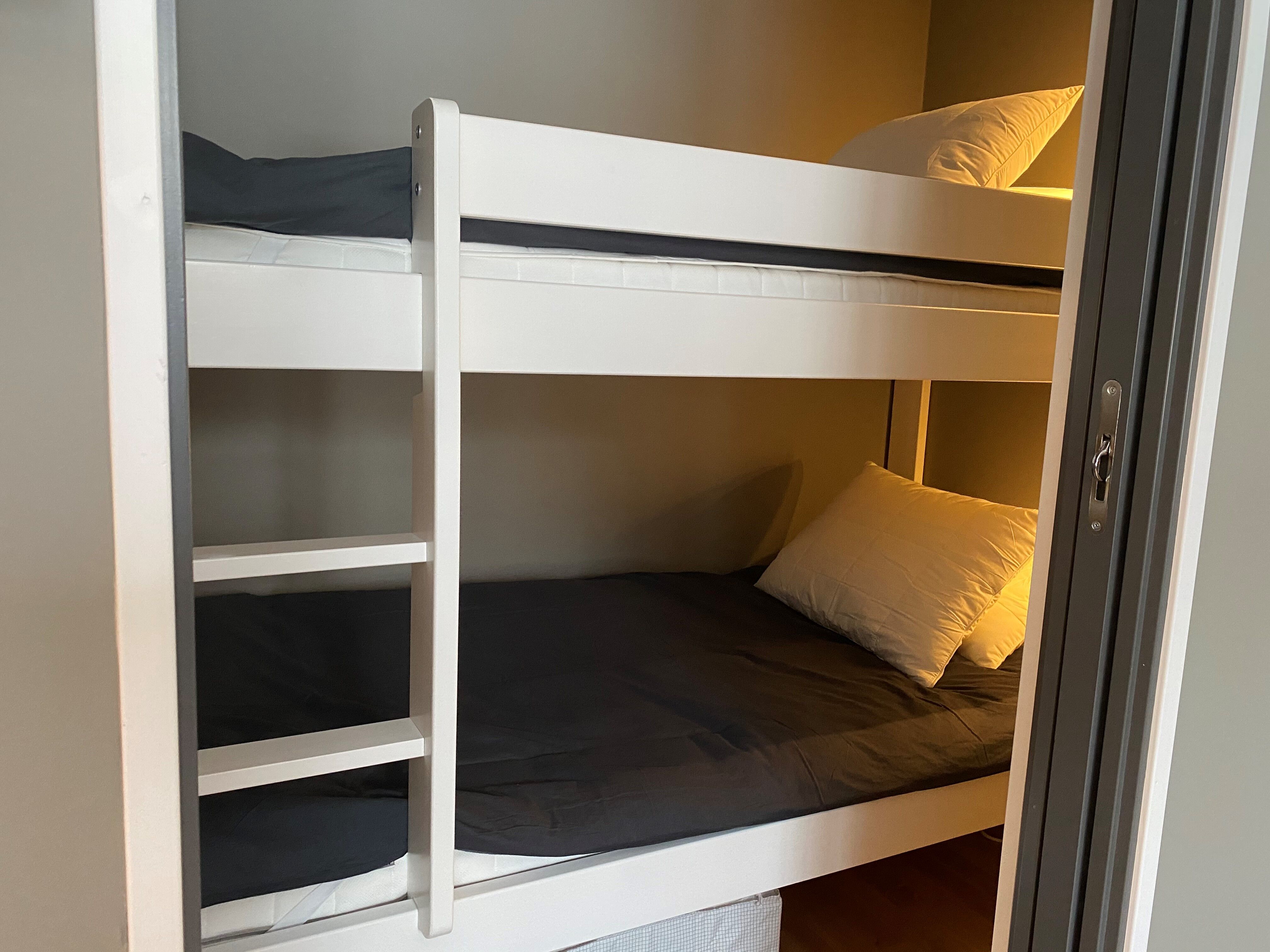 1 sovhytt med 1 våningssäng och bäddsoffa för 2 personer i allrum