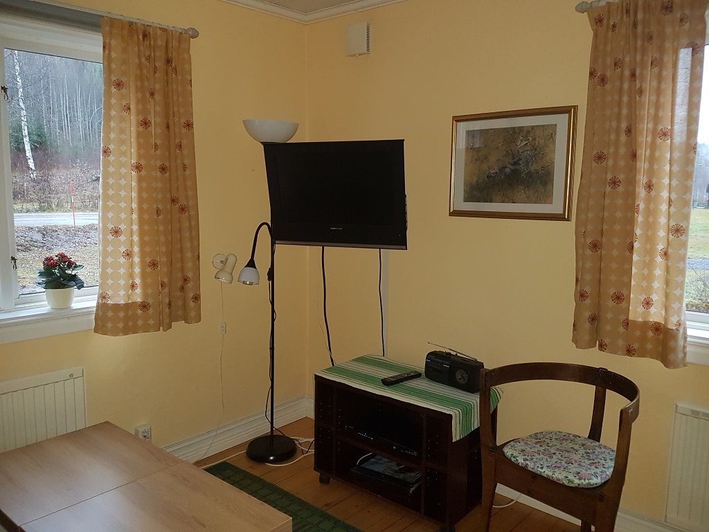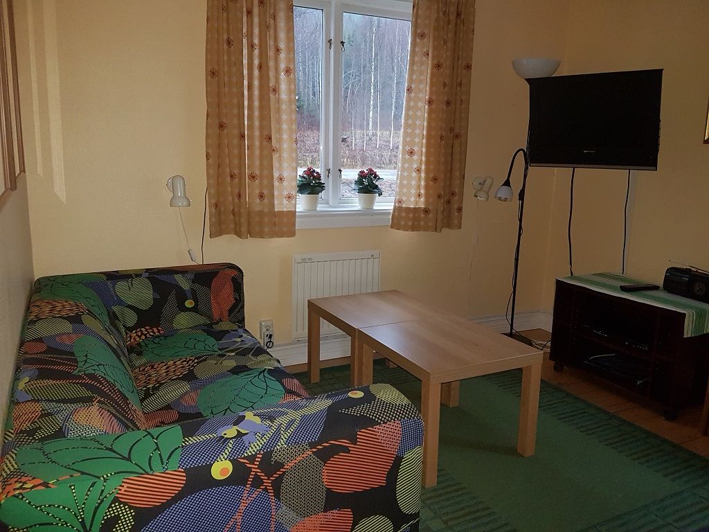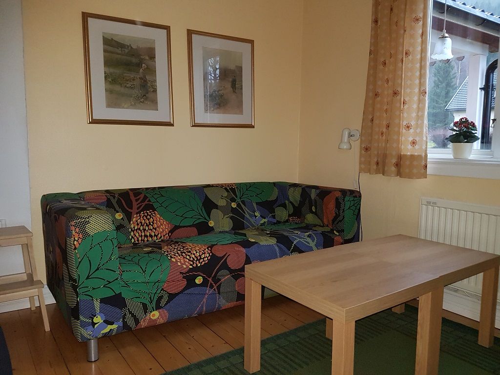 Mysig stuga på 35 kvm och 4 bäddar. Allrum med bäddbar soffa för ett barn, TV.