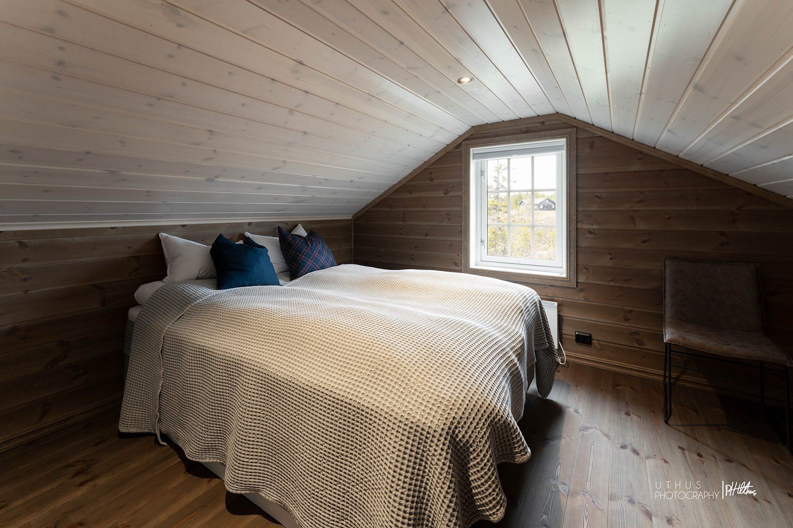 Sov 1 inneholder en stor dobbeltseng med plass til to voksne.