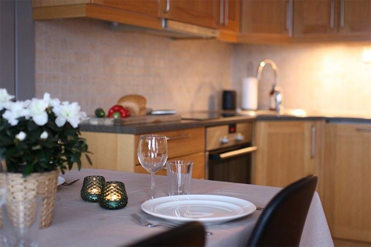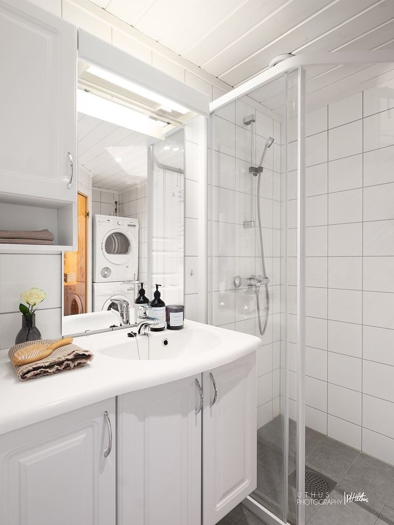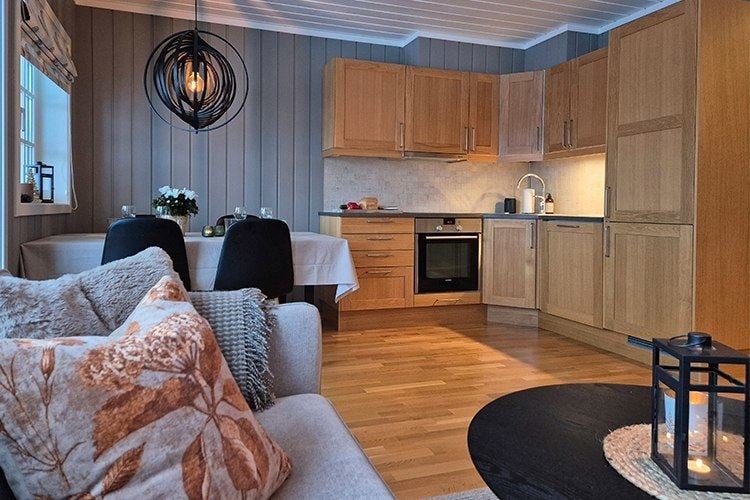 Leiligheten har et fullverdig bad med badstue, slik at du kan slappe av og lade opp etter en aktiv dag. Stue og kjøkkenområde er kombinert og gir et koselig fellesområde, samt peis.