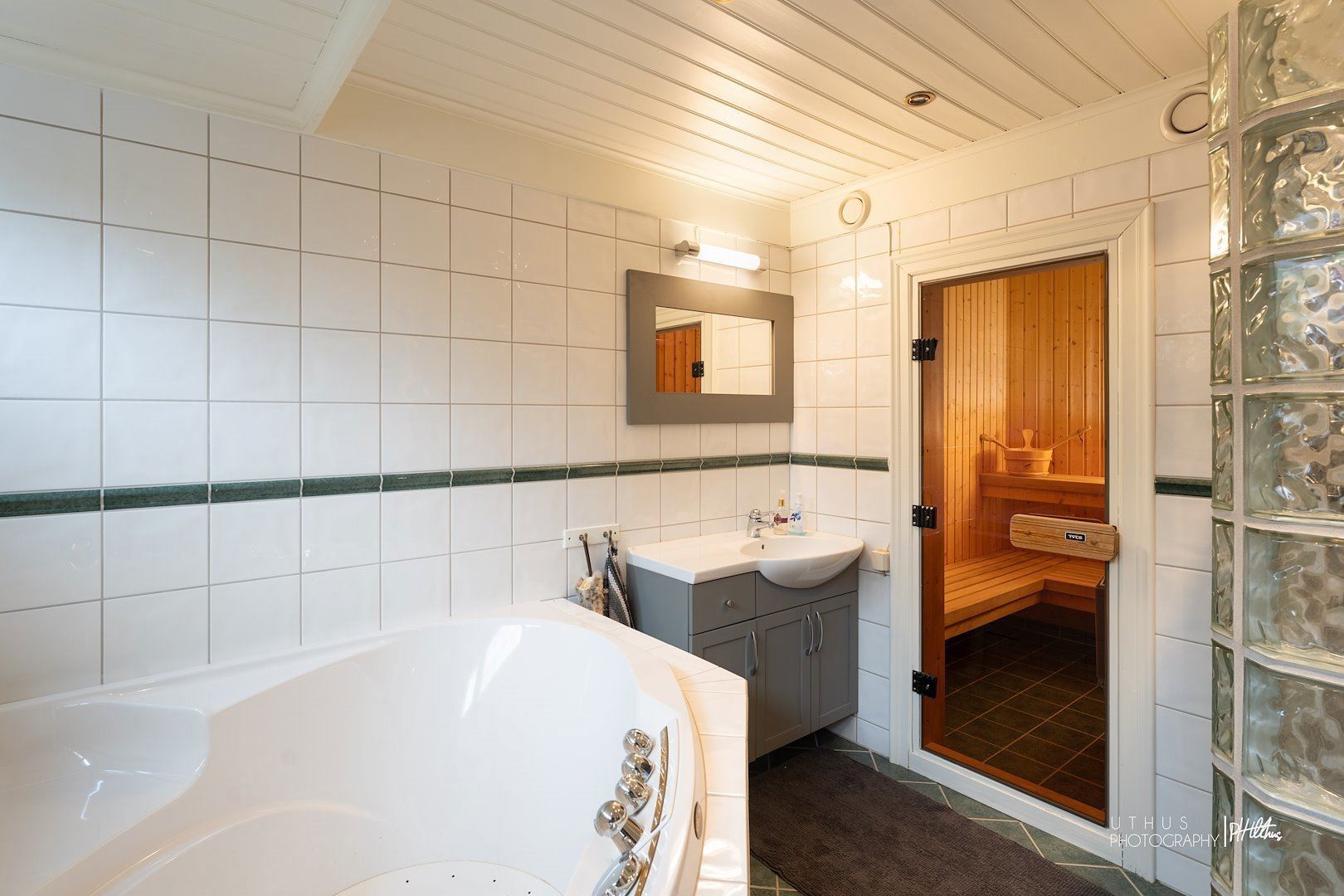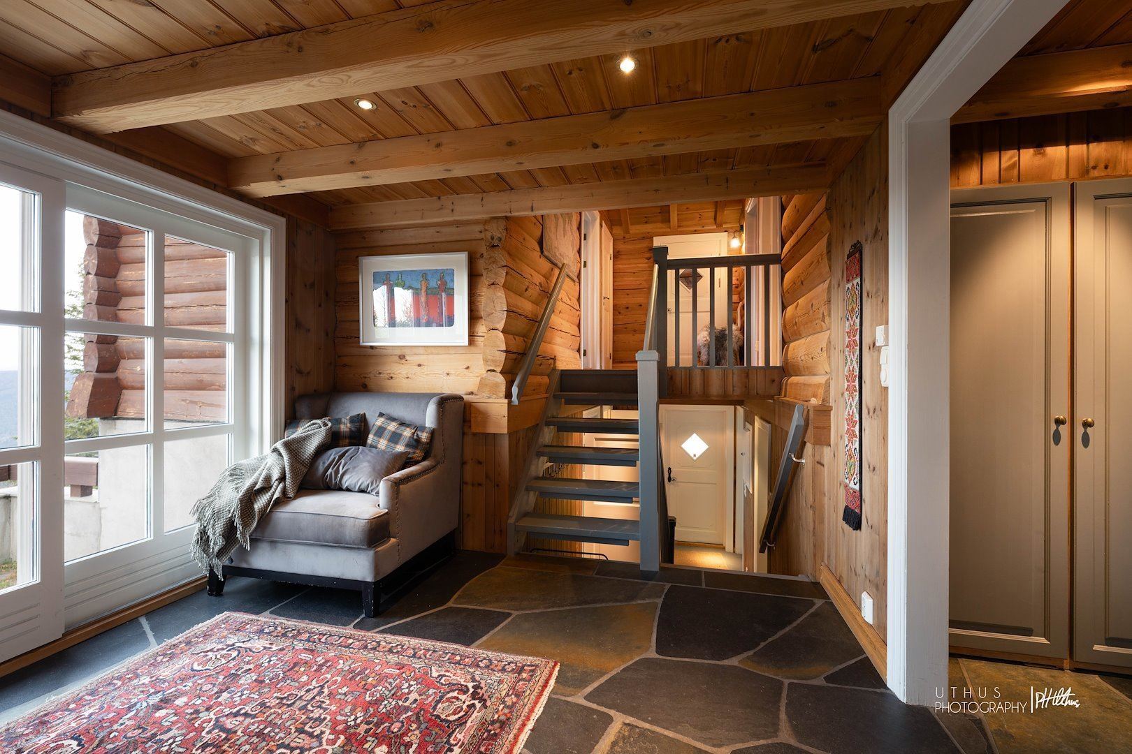 Hytta går over tre "halve" plan. Fra inngangsdør/gang har du adgang til stue/kjøkken og spiseområde. Et plan opp ligger to soverom samt bad. Ett plan ned finner du to soverom og to bad. Hytta har tre fullverdige bad, inkludert badekar og badstue.