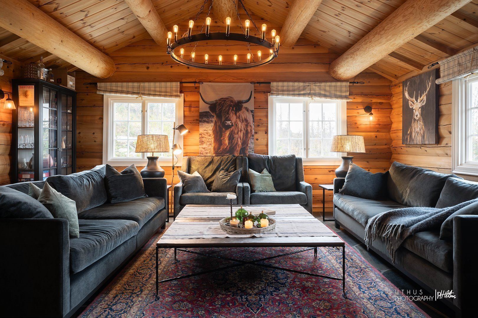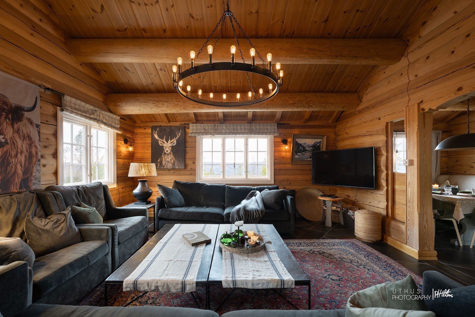 Koselig tømmerhytte med suveren alpin beliggenhet. 8 +1 sengeplasser, 4 soverom.