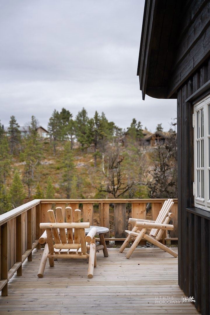 Flott, moderne hytte, oppført i 2023. 8 sengeplasser, 4 soverom, 2 bad. Fantastisk langrennsbeliggenhet.