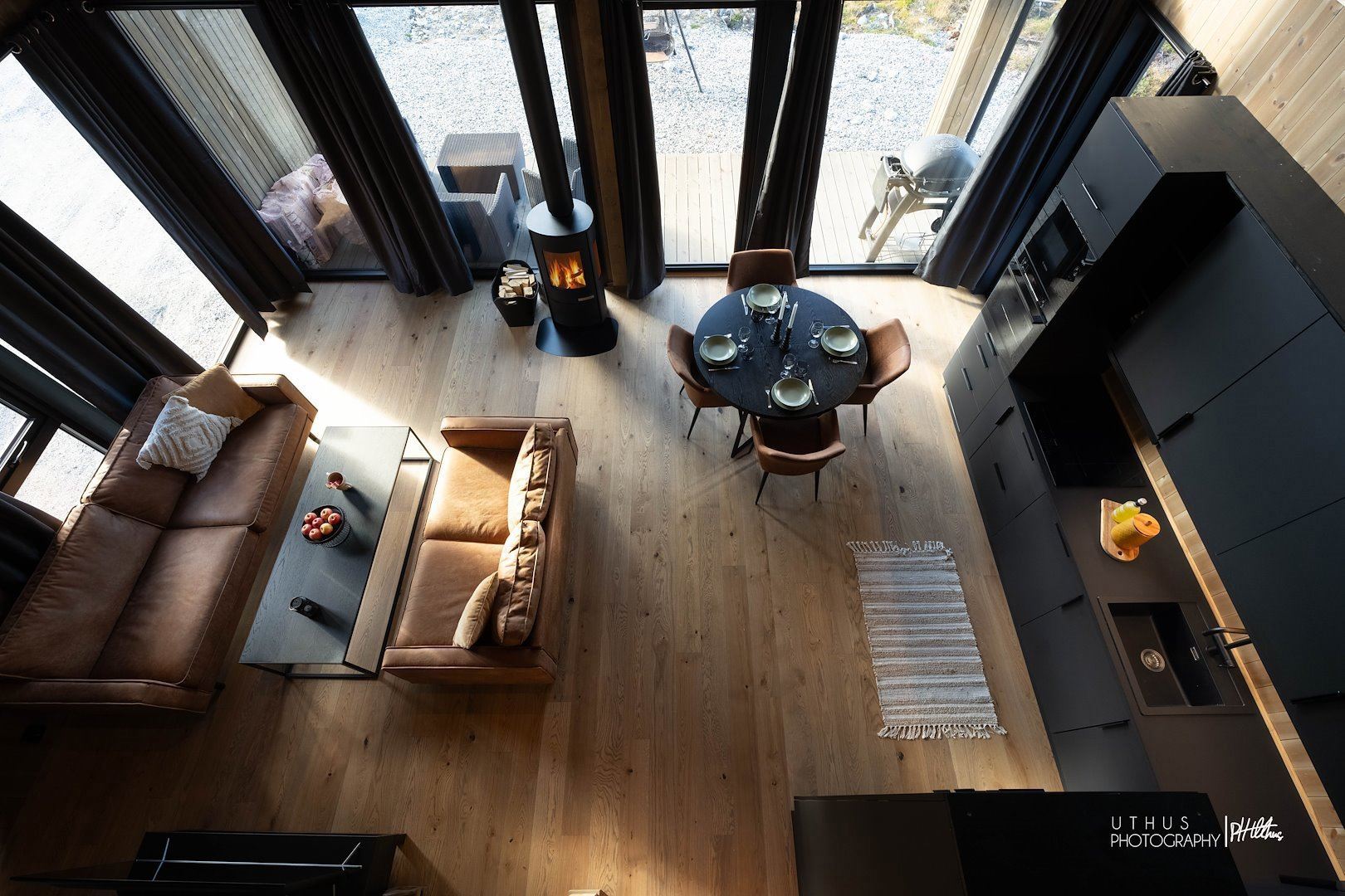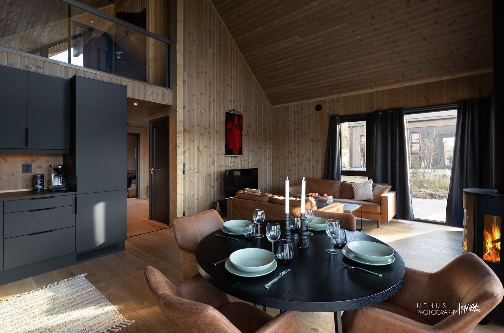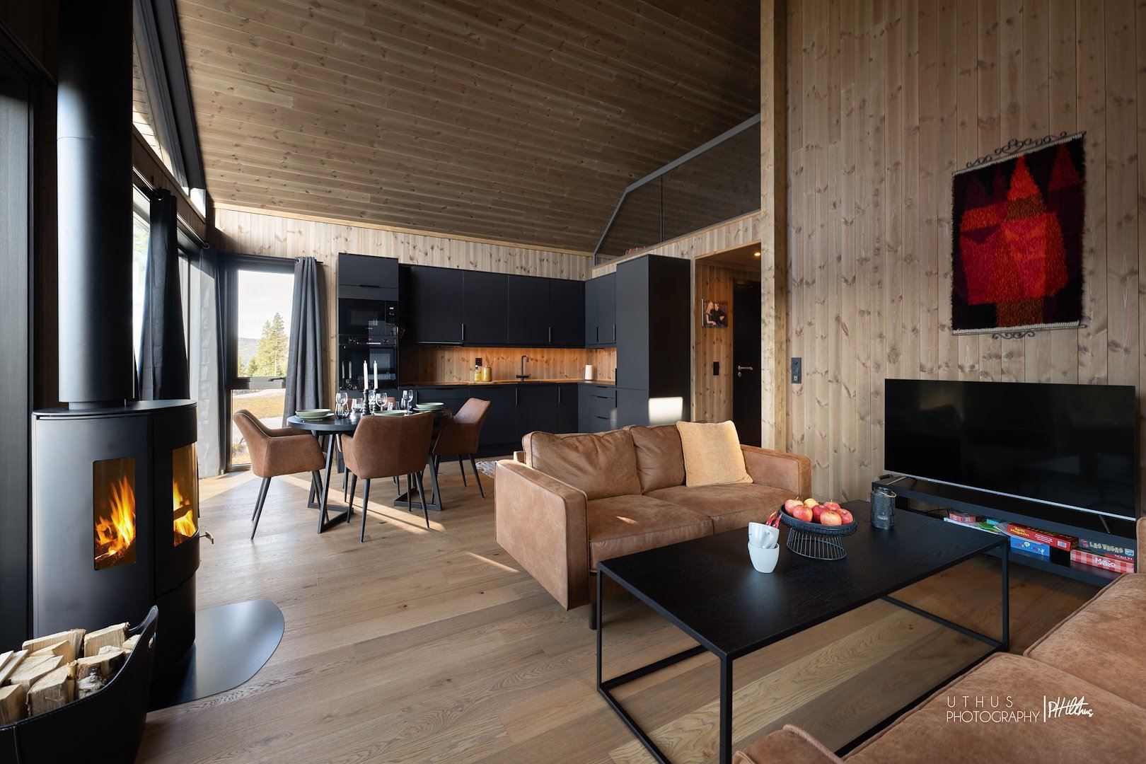 Hytta har lekre interiørløsninger, og går over to plan. i 1. etg har du 2 soverom, samt kombinert stue/kjøkken med utgang til terasse. i 2 etg er det en liten loftsstue, samt ett soverom. Gode solforhold. Ett fullverdig bad med vaskemaskin og tørketrommel, samt ekstra WC-rom på hemsen.