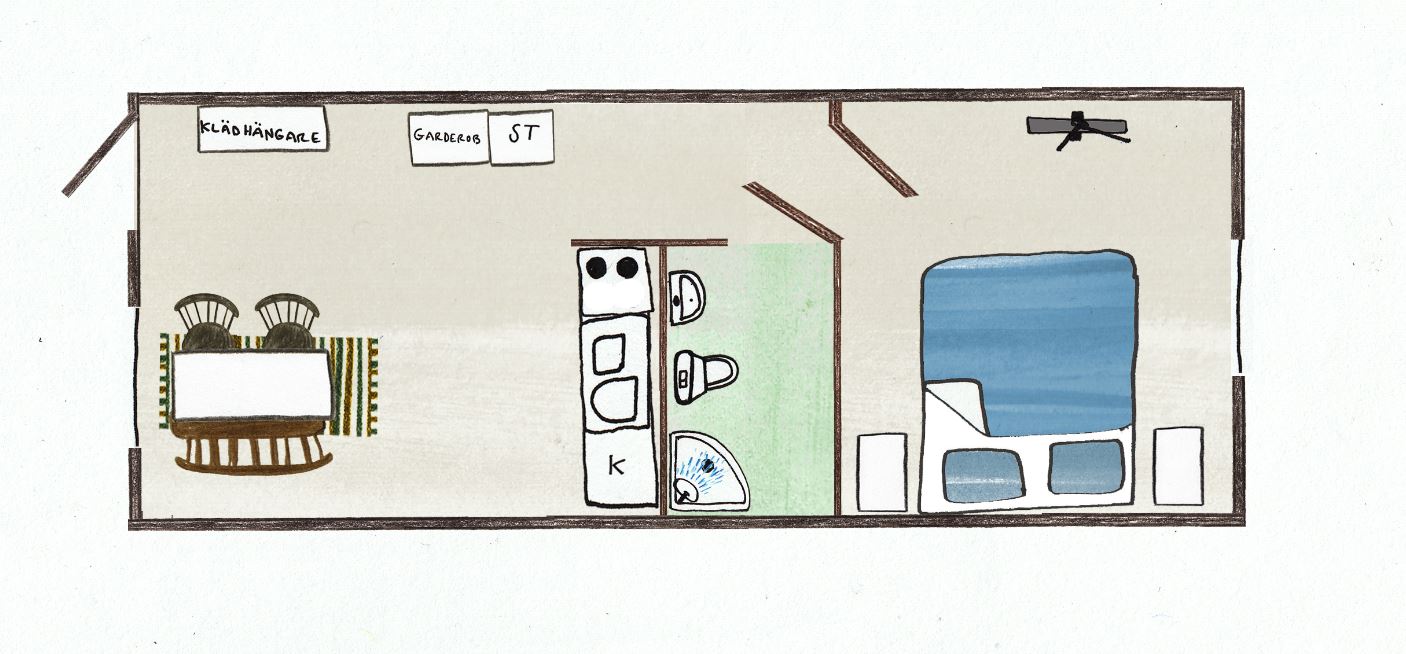 Sovrum 1: Dubbelsäng alternativt Familjevåningssäng